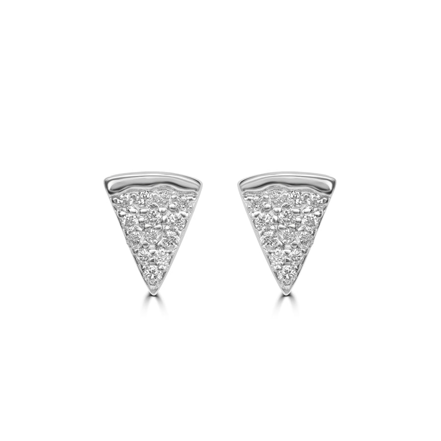 0.11 Cts White Diamond PIZZA Earring in 14K White Gold