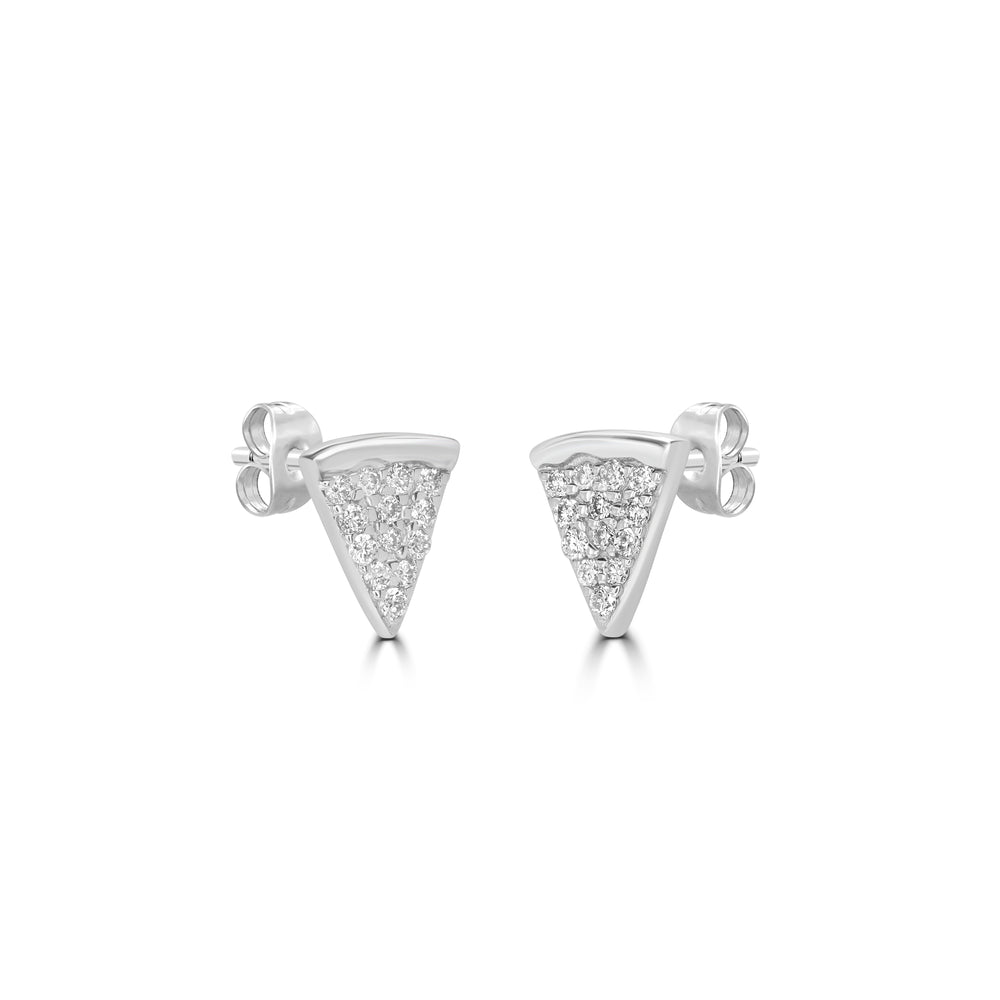 Whimsical and stylish, this PIZZA-shaped earring in 14K white Gold is adorned with 0.11 carats of man-made white diamonds. It adds a fun twist to your everyday look while keeping it refined and unique. A perfect gift for food lovers with flair.