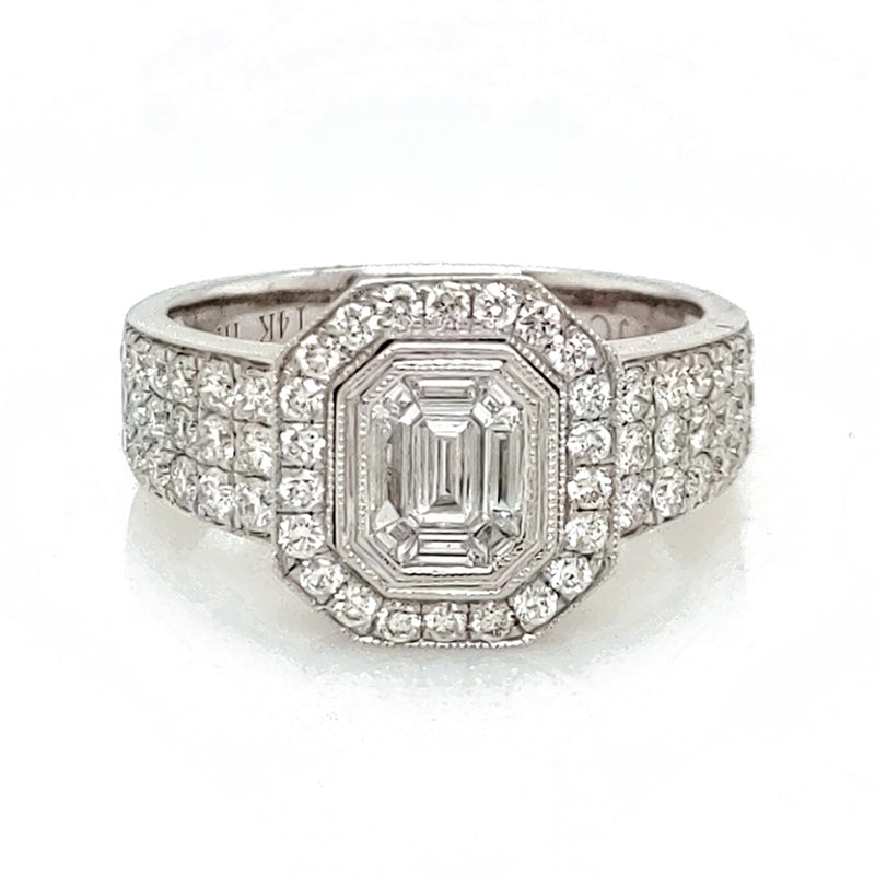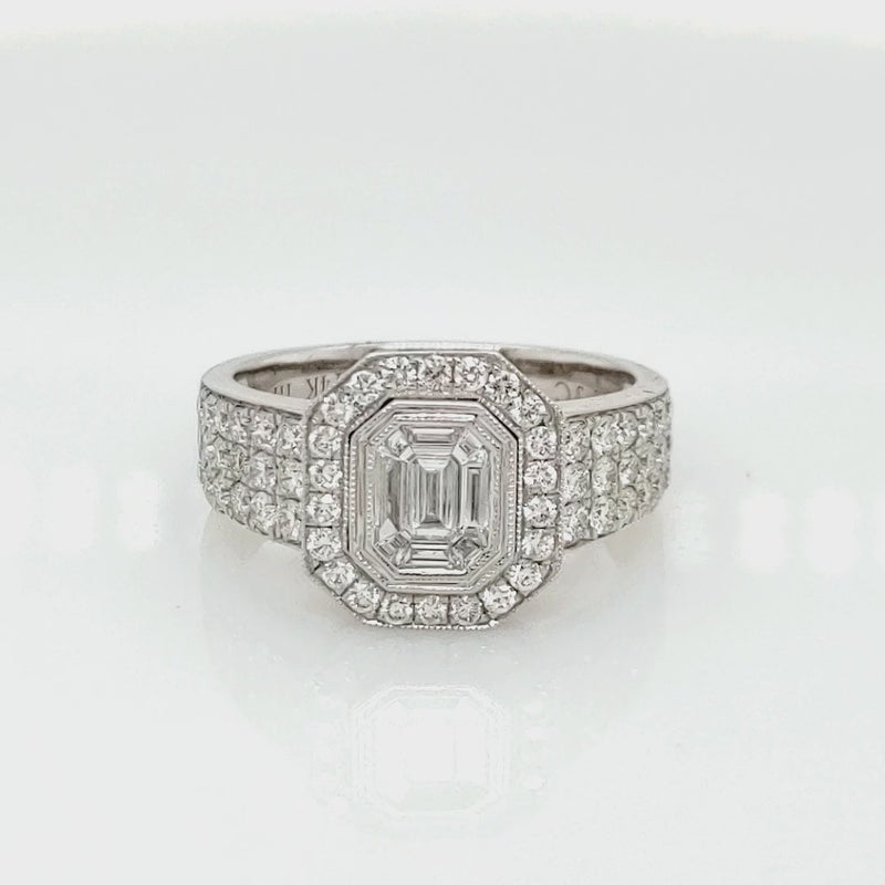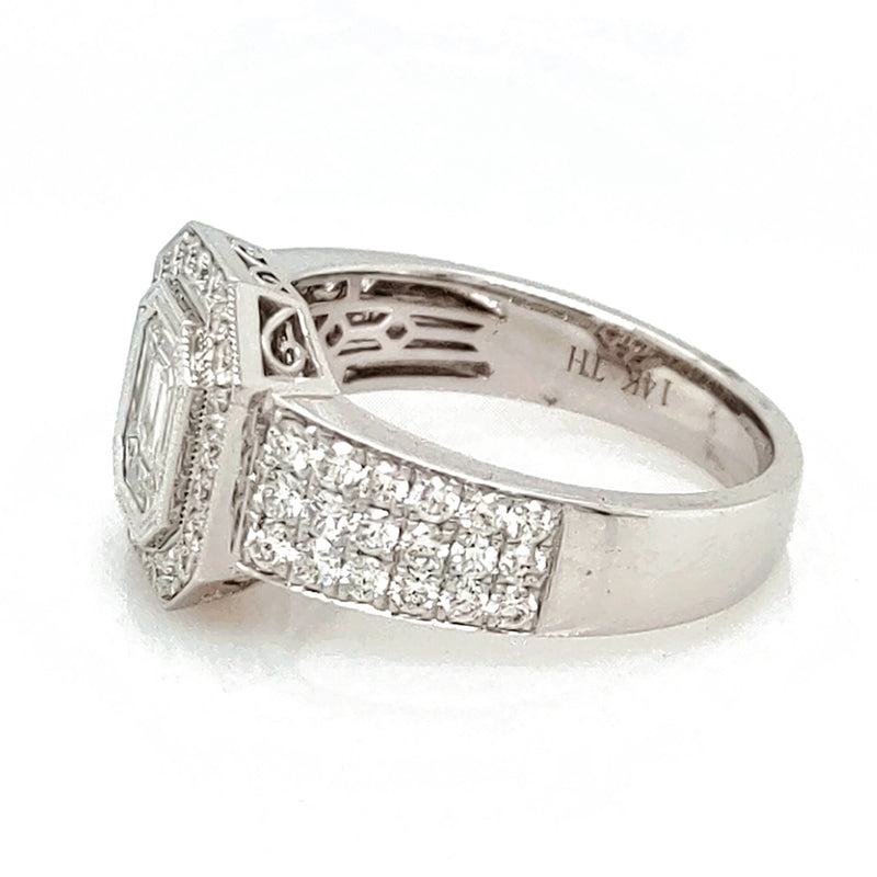 Pie Cut Diamond accented with white diamonds in 14K White Gold, creating a minimalist yet sophisticated ring for versatile styling.