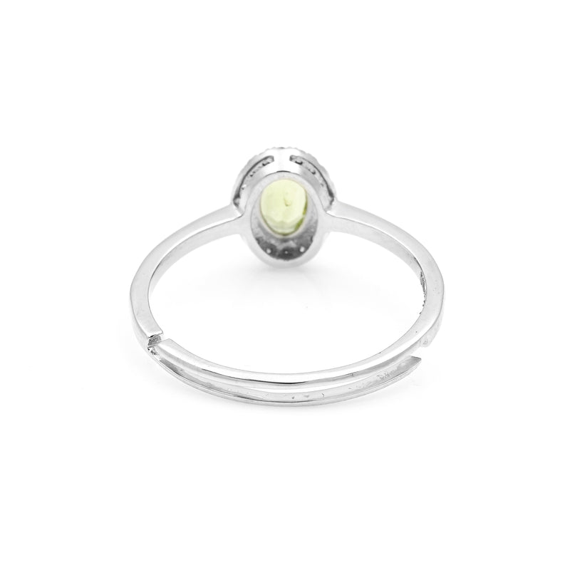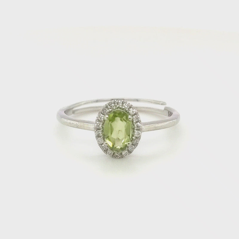 Peridot accented with white diamonds in 14K White Gold, a bright and stylish ring perfect for daily wear.