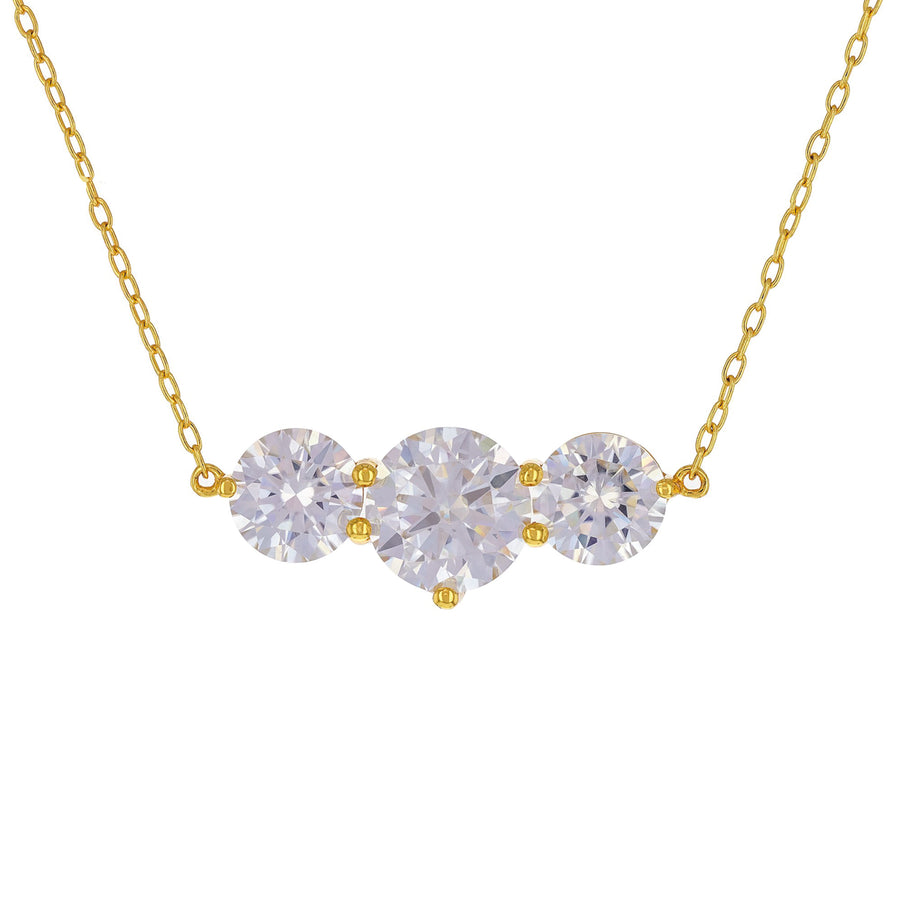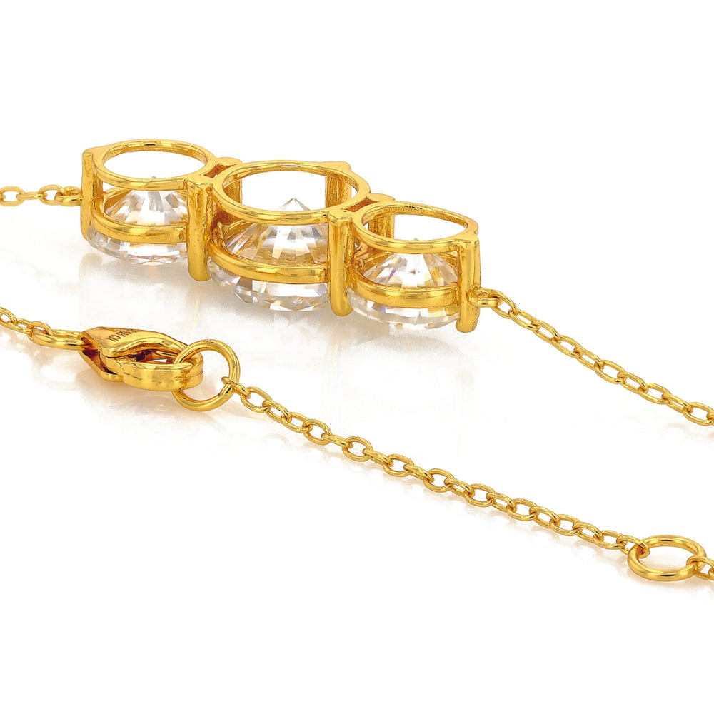 4 DEW White Moissanite 3 Stone Ring in Yellow Gold Plated 925 Silver