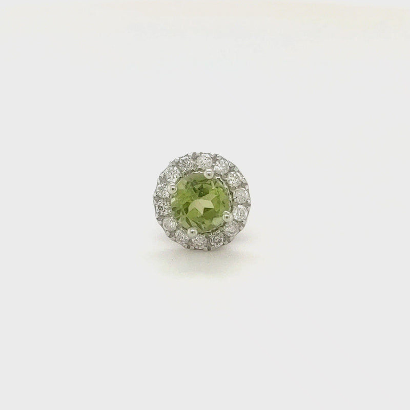 Luminous Peridot accented with white diamonds in 14K White Gold, a pendant that brightens your look with charm.