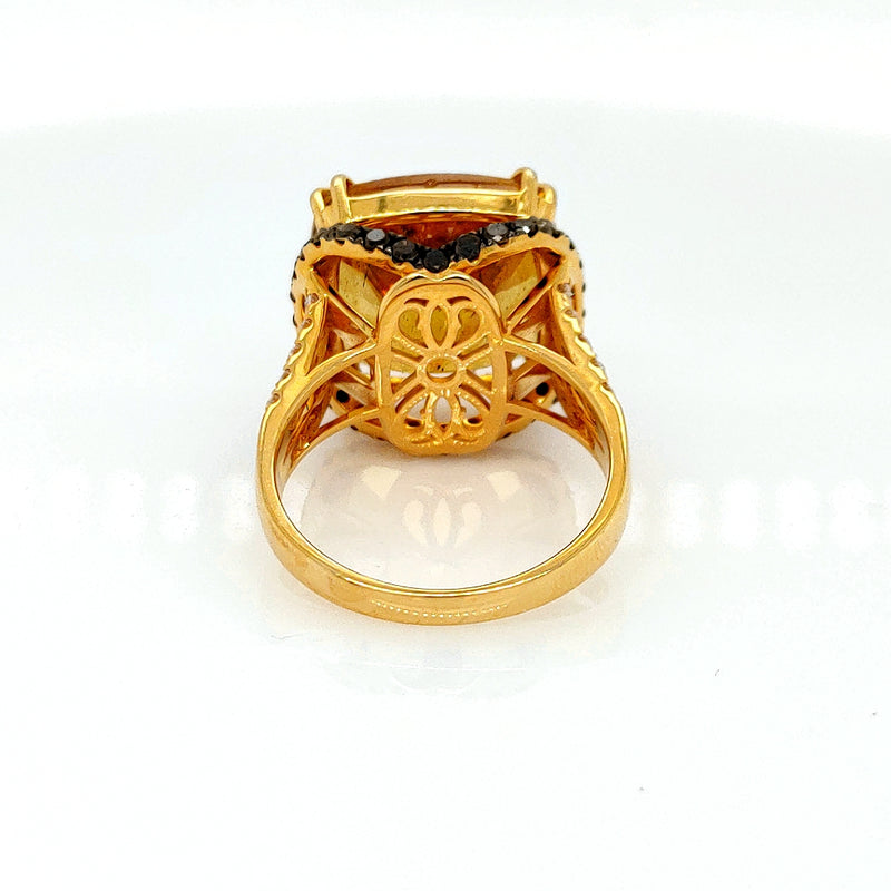 15.00 Cts Yellow Apatite and White Diamond Ring in 14K 2-Tone