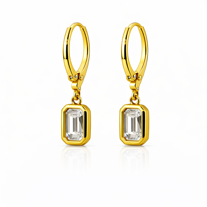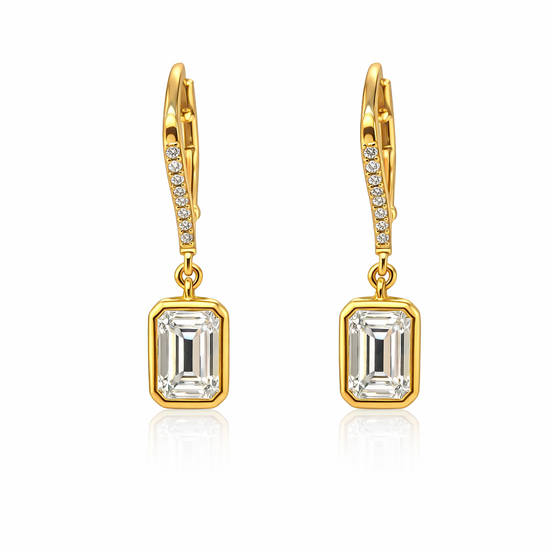 Paige 3.45 Cts Octagon Shape White Moissanite Dangle Earring in 925 18K Yellow Gold Plated