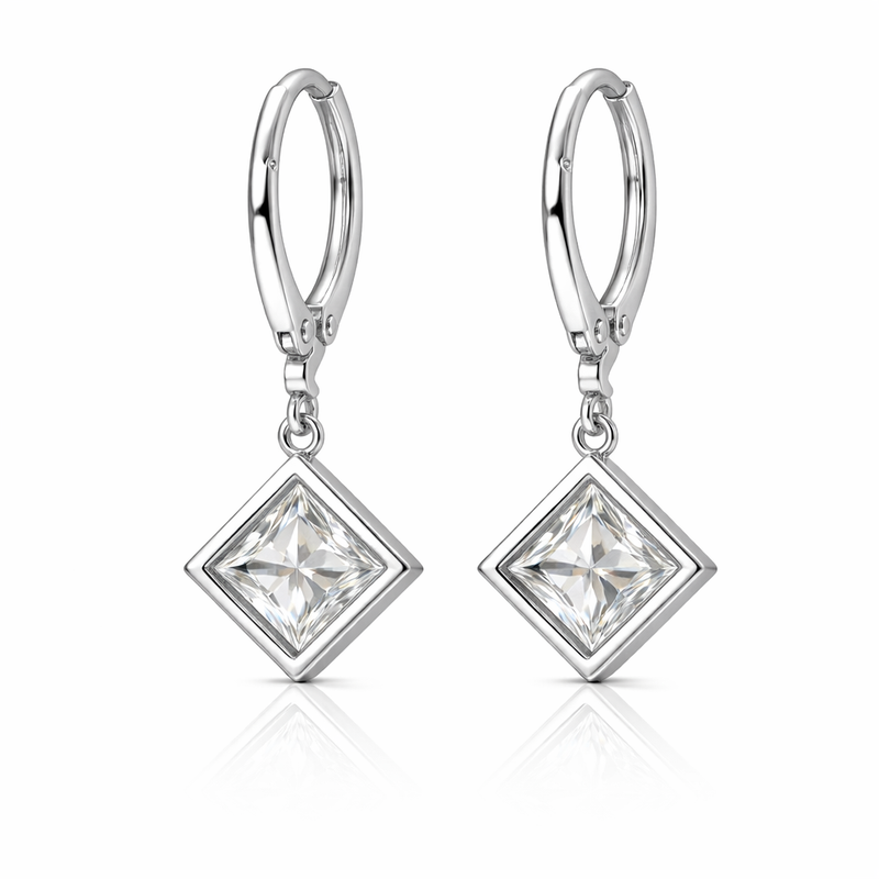 Paige 3.85 Cts Princess Shape White Moissanite Dangle Earring in 925 Platinum Plated