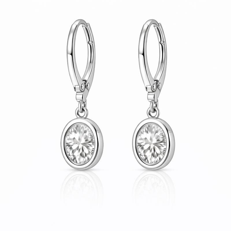 Paige 4.00 Cts Oval Shape White Moissanite Dangle Earring in 925 Platinum Plated