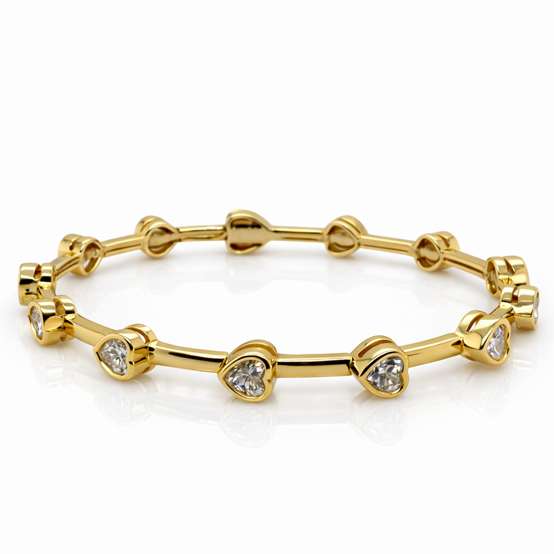 A stylish station bangle in yellow gold plated 925 silver, featuring radiant moissanite stones placed evenly across the design.