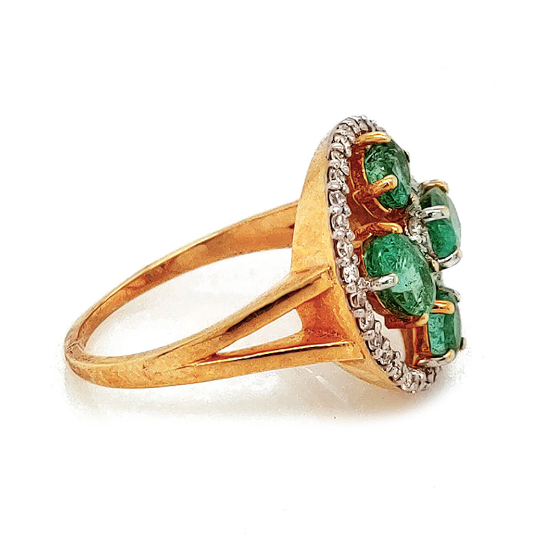 1.10 Cts Emerald and White Diamond Ring in 14K Yellow Gold