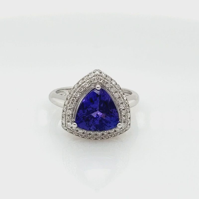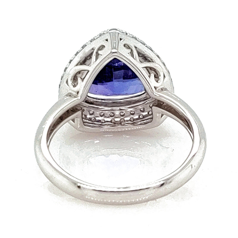 A bold Tanzanite ring accented with sparkling white diamonds in 14K White Gold, perfect for adding sophistication and color to your ensemble.
