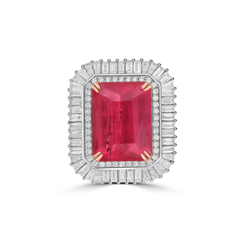 21.85 Cts Rhodochrosite and White Diamond Ring in 18K Two Tone