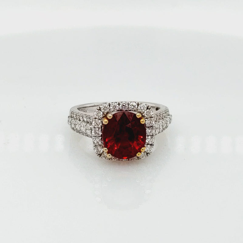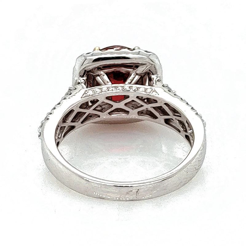 Sunset Spessartite with sparkling diamonds in 18K Two-Tone Gold, offering a rich, radiant hue and elegant design for memorable occasions or daily elegance.