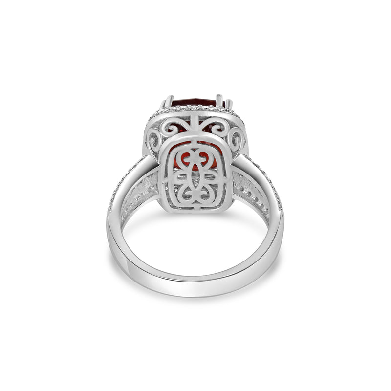6.25 Cts Rhodochrosite and White Diamond Ring in 14K White Gold