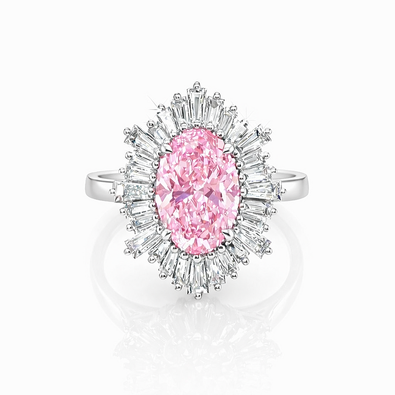 4.01 Cts Pink Lab Grown Diamond and White Lab Grown Dimaond Ring in 14K White Gold