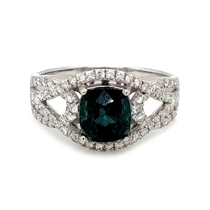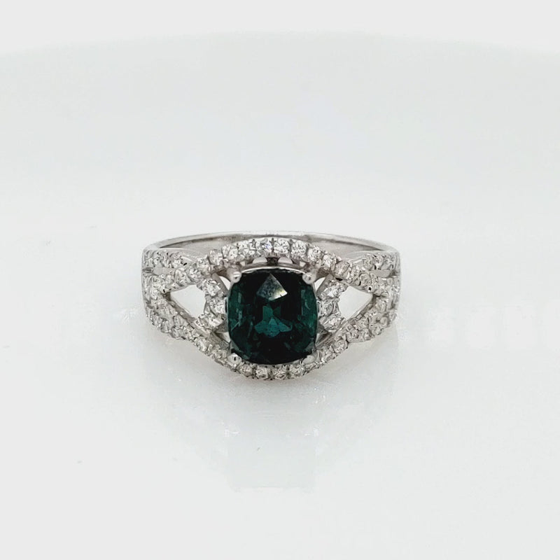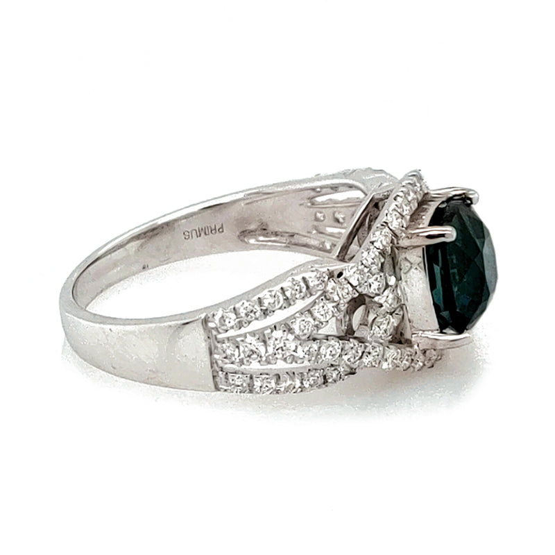 Deep Indicolite Tourmaline complemented by white diamonds in 14K White Gold, creating a refined ring that enhances any look with unique color.