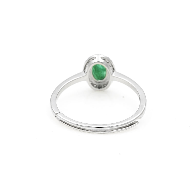 • 0.45 Cts Emerald and White Diamond Ring in 14K White Gold